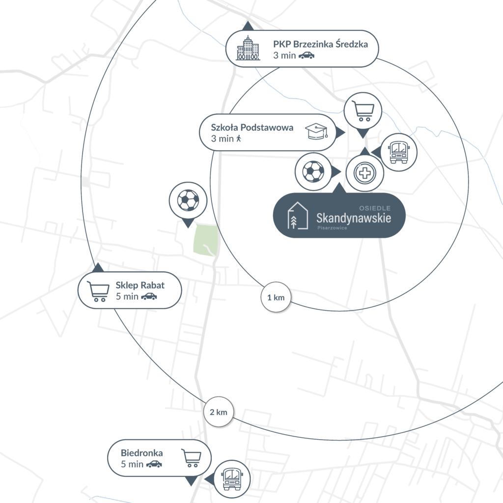 Zobacz w Google MapsW okolicy znajduje się wszystko, czego potrzeba do codziennego, komfortowego życia. Szybko można odprowadzić dzieci do szkoły, zrobić zakupy dla całej rodziny, odebrać paczkę i umówić wizytę u lekarza. A jeśli ktoś lubi uprawiać sport, na pewno ucieszy go bliskość boiska, hali sportowej czy siłowni na świeżym powietrzu.