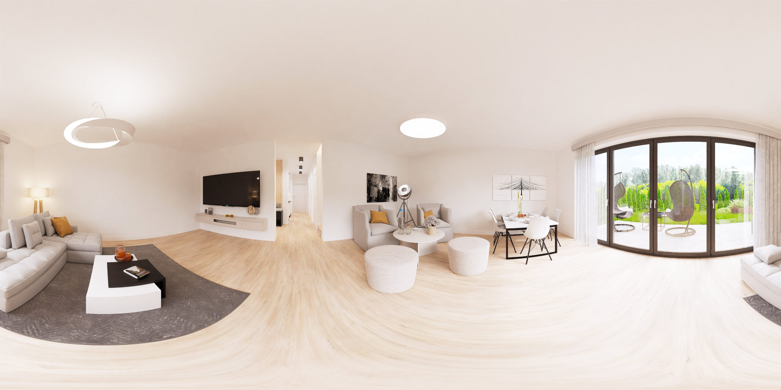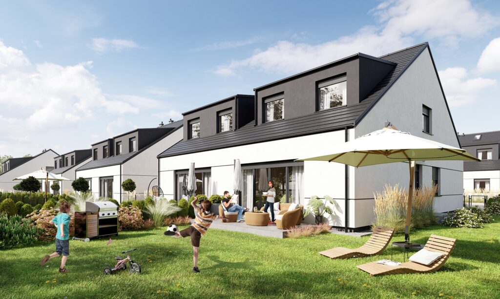 Z salonu każdego domu, przez duże okno tarasowe, wychodzi się do własnego ogrodu, w którym można odpoczywać na świeżym powietrzu, spotykać się z bliskimi przy grillu, bawić się z dziećmi lub pielęgnować ulubione rośliny. Działki są dostępne w różnych wielkościach, więc łatwo można dobrać powierzchnię naturalnej przestrzeni do indywidualnych potrzeb.