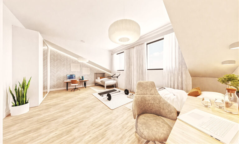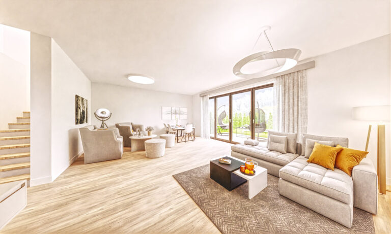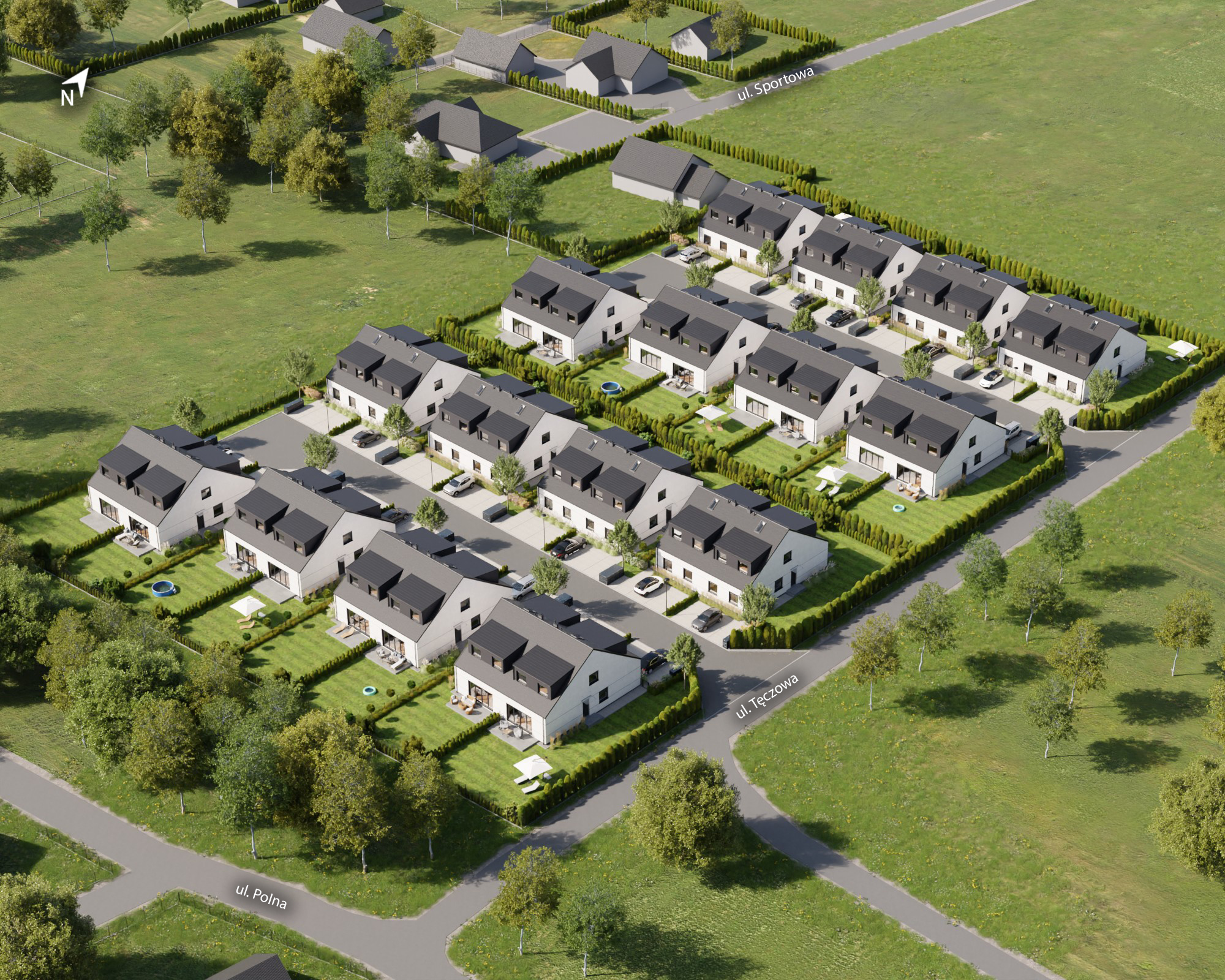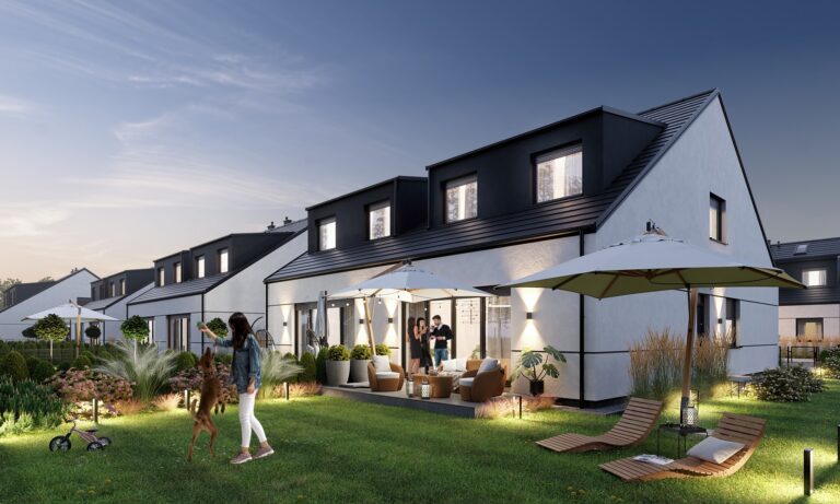 Z salonu każdego domu, przez duże okno tarasowe, wychodzi się do własnego ogrodu, w którym można odpoczywać na świeżym powietrzu, spotykać się z bliskimi przy grillu, bawić się z dziećmi lub pielęgnować ulubione rośliny. Działki są dostępne w różnych wielkościach, więc łatwo można dobrać powierzchnię naturalnej przestrzeni do indywidualnych potrzeb.